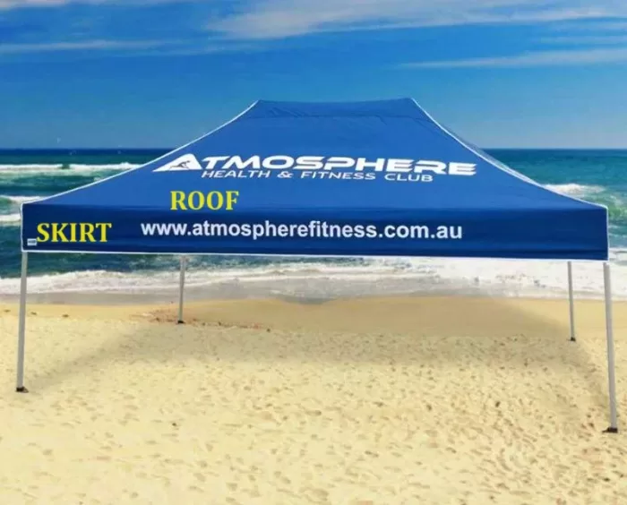 What’s included? Carry bag with wheels, ropes and pegs included with every marquee Warranty : 5 years. Structural engineer certification with wind speed rating on all marquees Walls and half walls – you can add as many as you require. Your custom PMS colour available when printing on 4x Roof peak panels & 4x Skirts.